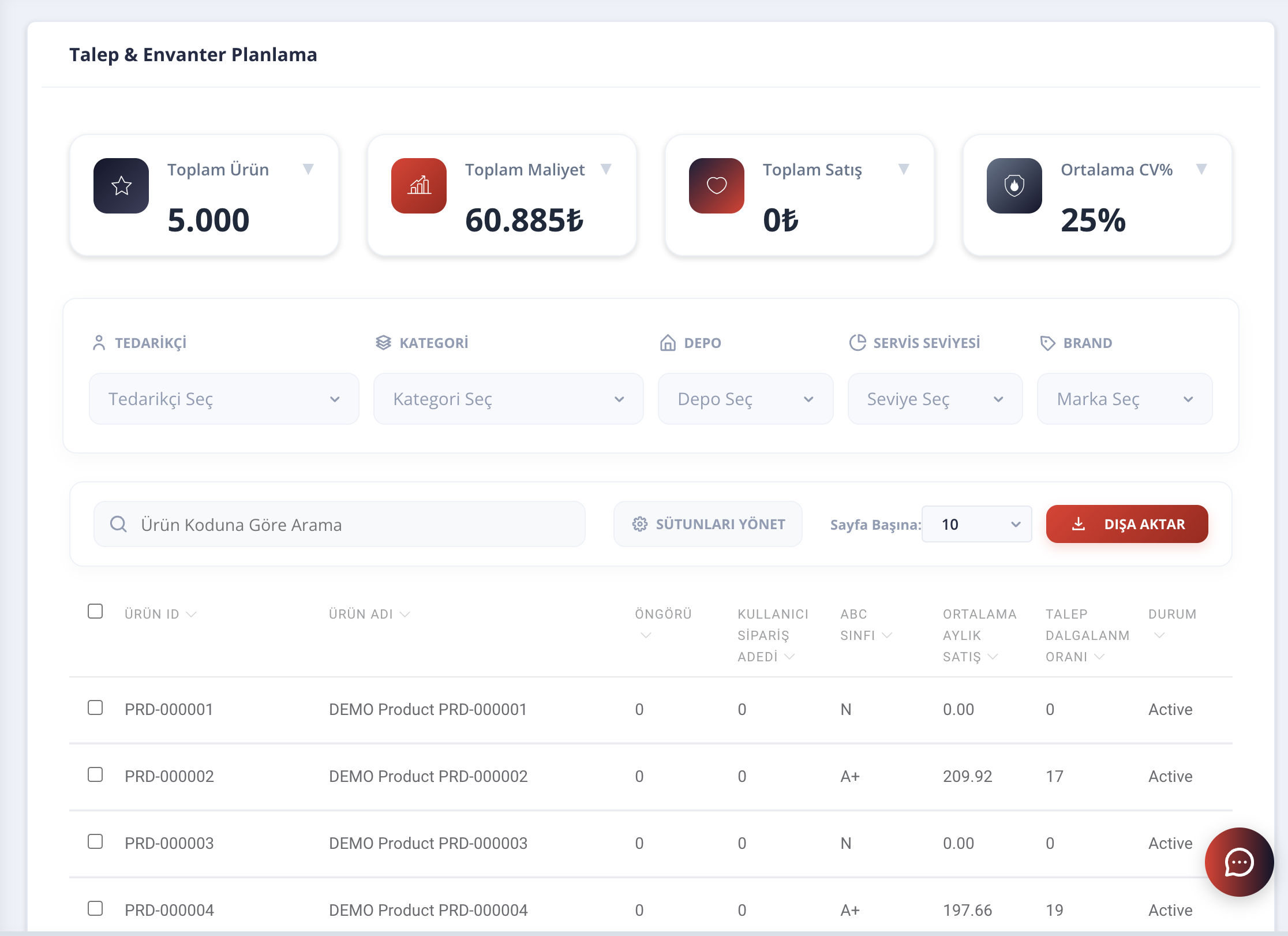 Tüm ModüllerŞubeler arası dengeleme, atıl stok tespiti ve kapasite optimizasyonu tek merkezden.